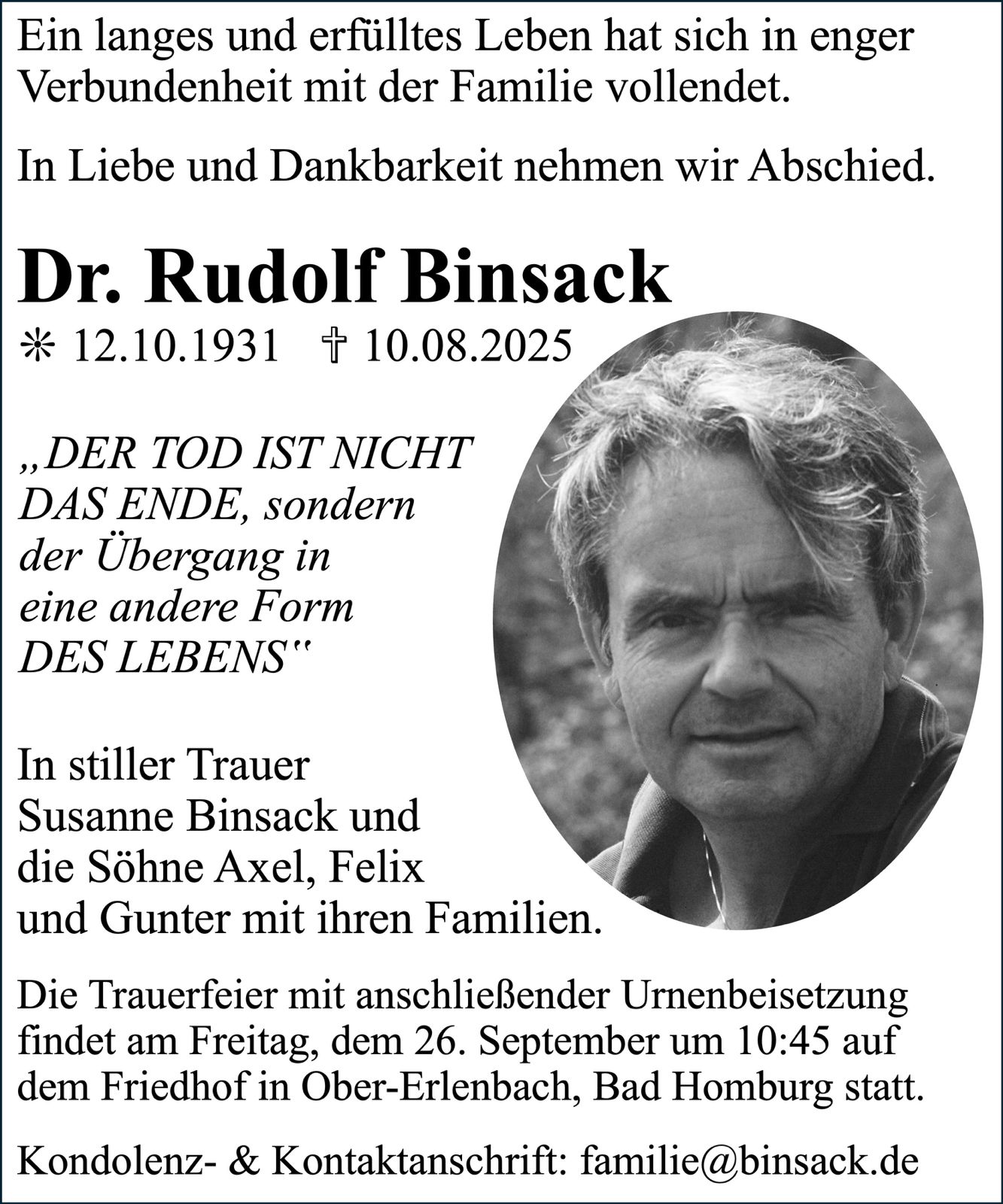 Rudolf Binsack – Consultant für Internationale Technische Zusammenarbeit / Bad Homburg